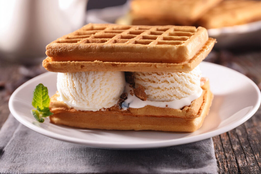 Les sandwichs glacés de gaufres offrent une variante délicieuse d’un dessert classique. Commencez par préparer votre pâte à gaufres préférée, puis faites cuire les gaufres jusqu’à ce qu’elles soient dorées et croustillantes. Ensuite, laissez-les refroidir complètement. Une fois refroidies, placez une généreuse boule de votre saveur de glace préférée entre deux gaufres.