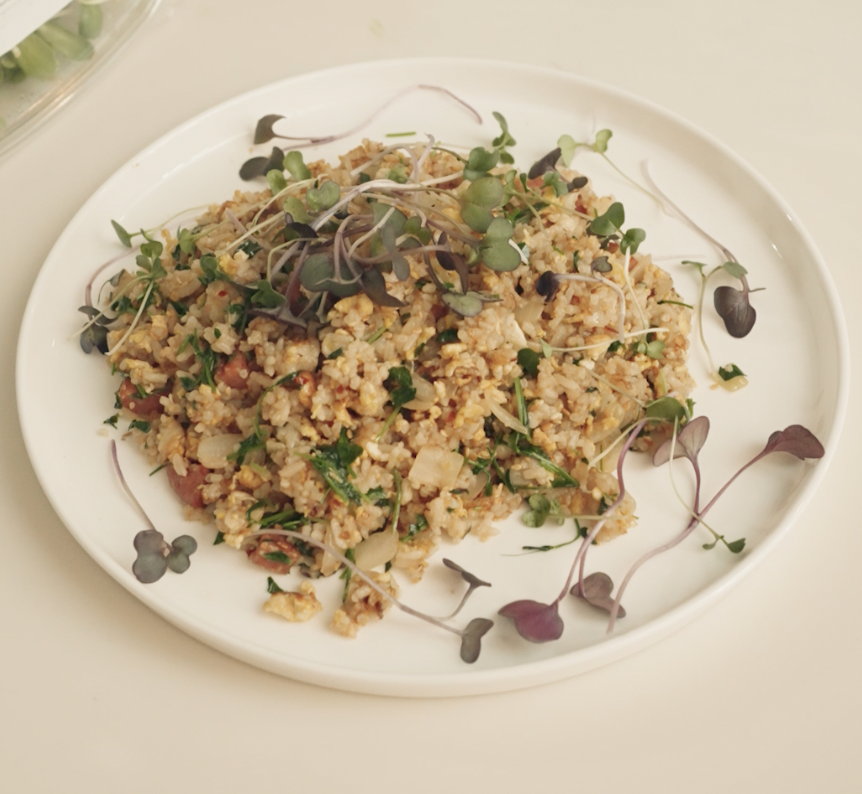Nous utilisons des microgreens fournis par kevinlovesmicrogreens : une petite ferme “directe à la communauté” qui offre des livraisons rapides à domicile n’importe où à Montréal. Ils se spécialisent dans la culture de 4 variétés de micro-pousses riches en nutriments.